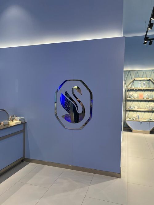 The façade spans the entire shopfront and extends into the Westfield shopping centre, ensuring maximum visibility and impact. Inside, polished stainless-steel Swan logos were incorporated into the design, complementing the high-end, luxurious atmosphere of the store. The crafted Swarovski logos were strategically placed at the front and center of the façade, casting it's huge illuminated logo across the shopping district.